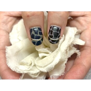 定額ネイルデザイン8700円 ベージュ&ブラックネイル